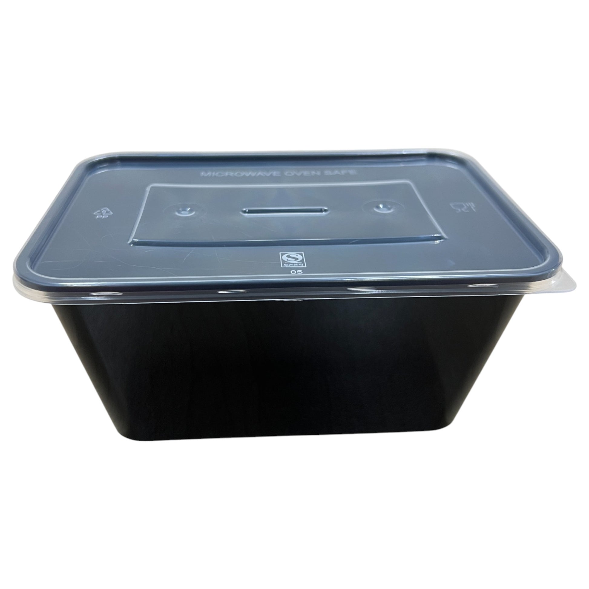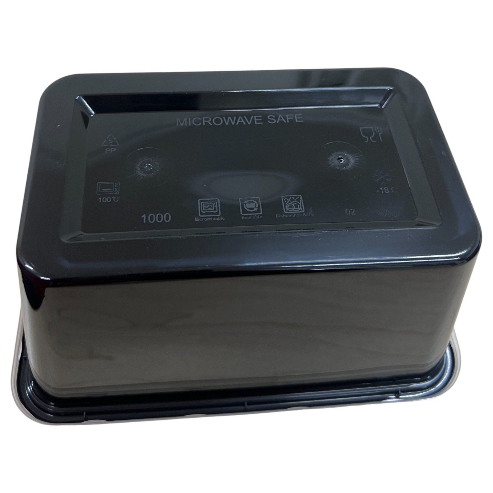 1000Ml Black Plastic Reusable Food Lunch Snack Containers With Clear Lids
